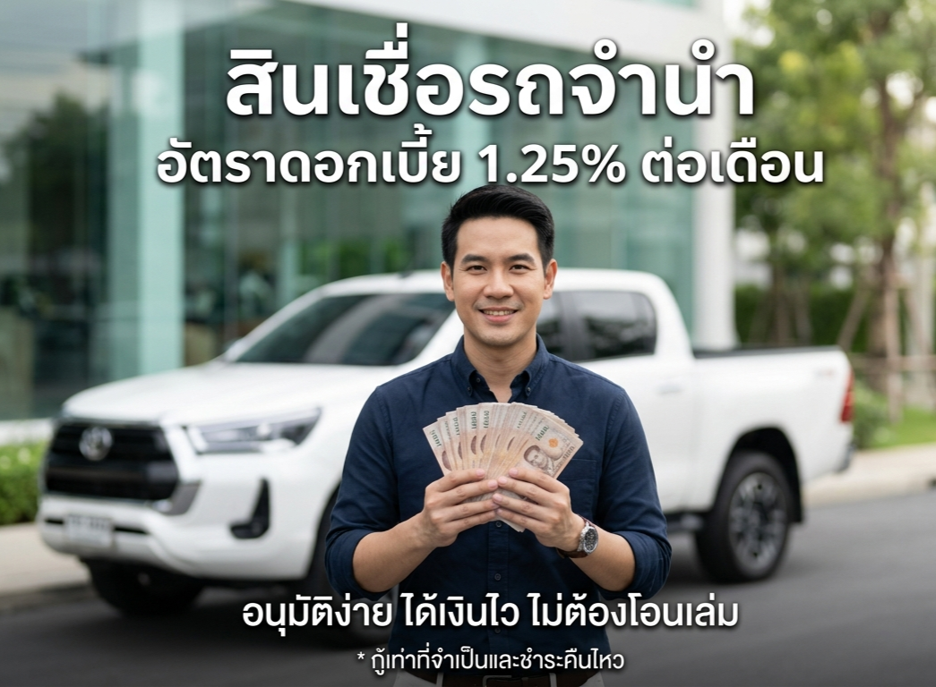 สินเชื่อจำนำเล่มรถยนต์ ไม่ต้องโอนเล่ม รับเงินเต็มจำนวน ผ่อนชำระสูงสุด 60 เดือน